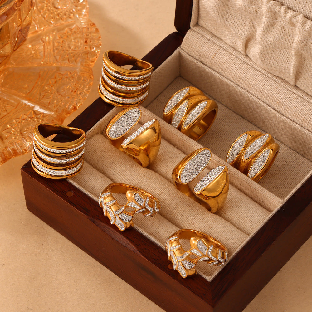 A modern wave-shaped ring accented with shimmering crystals for a refined, elegant finish.
