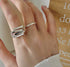 A silver open ring featuring stacked rectangular bars in a geometric layout, offering a unique and modern style.