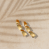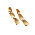 Long drop earrings featuring three stacked geometric gold-tone plates.