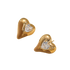 Glossy gold-tone heart-shaped stud earrings with a central heart-cut cubic zirconia.