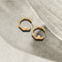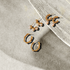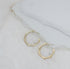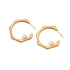 Abstract gold-tone hoop earrings featuring a sculptural hexagon-like frame with pearl accent.