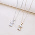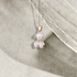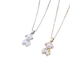 A silver/gold necklace featuring an adorable teddy bear pendant made of pearls.