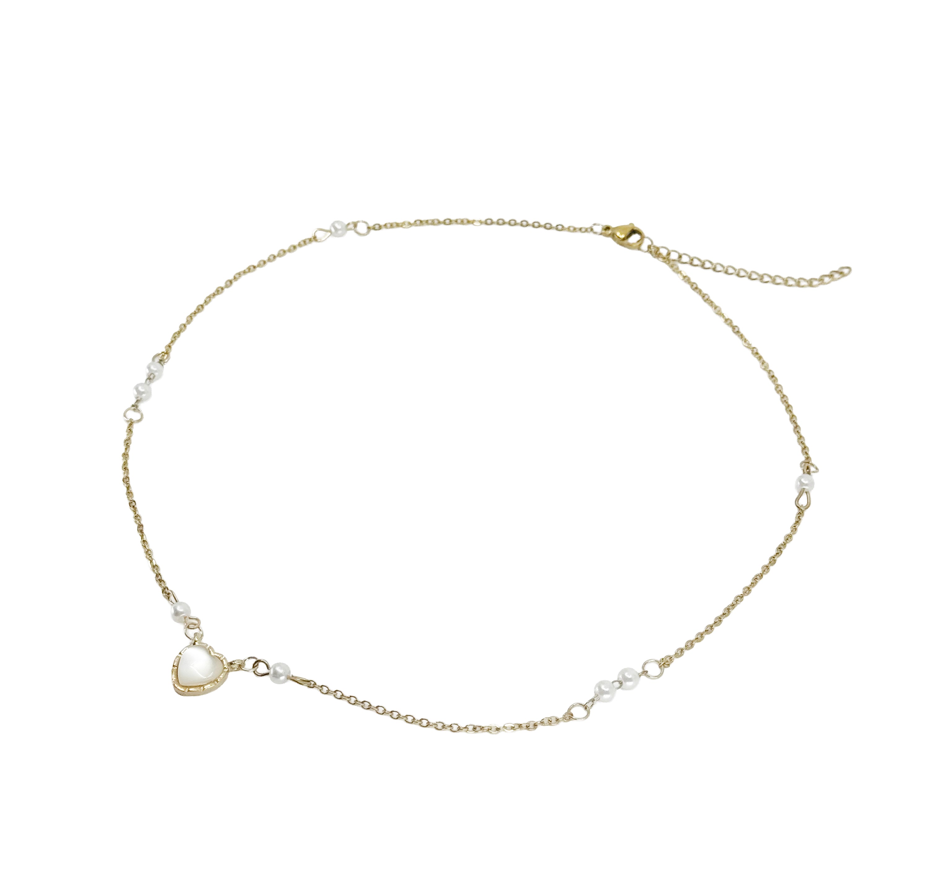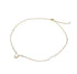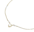 A rose gold necklace featuring a teardrop pink stone pendant accented with delicate pearl details.