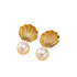 Gold-tone drop earrings featuring shell motif and a classic pearl accent.