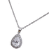 A silver pendant necklace featuring a teardrop-shaped crystal centerpiece.