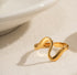A gold open ring designed with fluid wave-like curves, offering a minimal yet distinctive look.